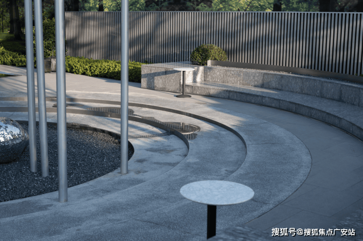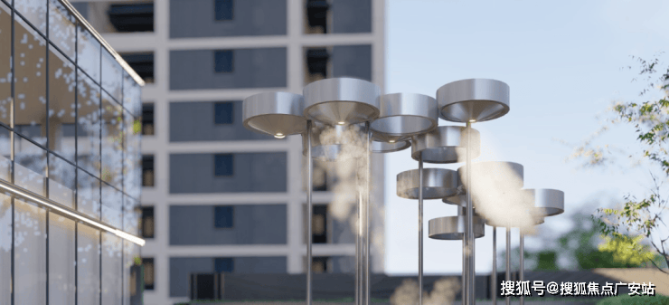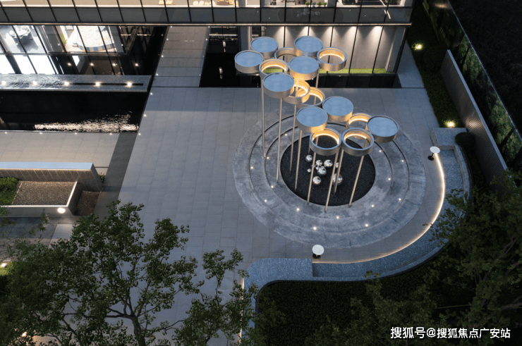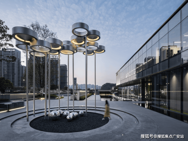 登高却不望远,溯坡而上来到了一个环形小剧场。由高高低低的细杆撑起的大大小小的银盘,构成了一组轻盈的艺术装置——“云亭”,映射着天空的光彩,似远方飘来。⭐⭐大华峰汇华城售楼处电话:400_998_7894⭐⭐