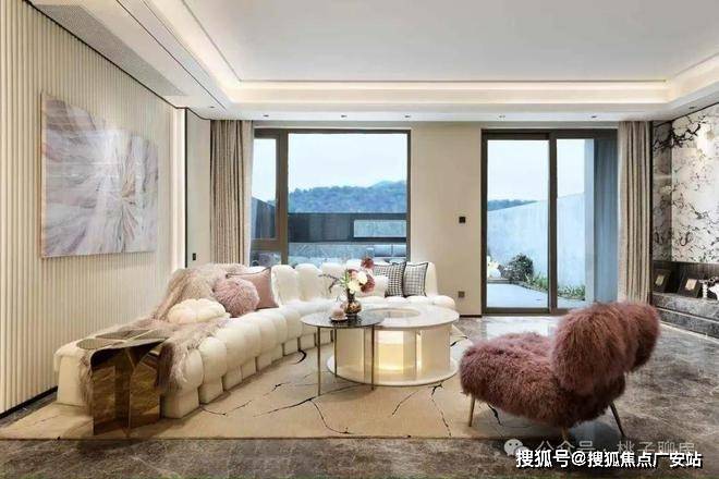 建面约245方的江山合院,整体5室2厅6卫。L型围合出私密独享内庭院;南向超大面宽更是超过了17米。为了追求即时采光面和开阔的观景视野,设计团队落地打造了270度环幕全景窗设计,自此在室内便可将一园四季美景尽收眼底。