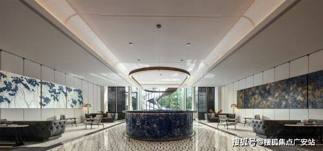 艺术馆般的泳池天花,以及泳道尽头的景泰蓝奢石背景墙面,运用海派建筑造型元素打造出现代摩登的低调奢华,勾勒出一处至臻奢享、静感舒悦的精神之所,游戈向往的生活。