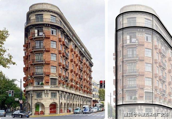 实体的片墙与虚幻的玻璃体的对比,代表着过去的厚重与未来的通透,以重新摹写邬达克的方式融合,在刚性与柔性之间演绎新海派。