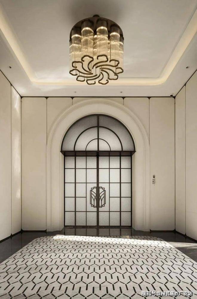 车道归家路,奢选金属格栅,通过阵列排布结合防眩光灯光,进一步烘托庄重典雅的鎏金空间氛围;通过轻盈质感的玻璃大门进入内部,优雅抵达。