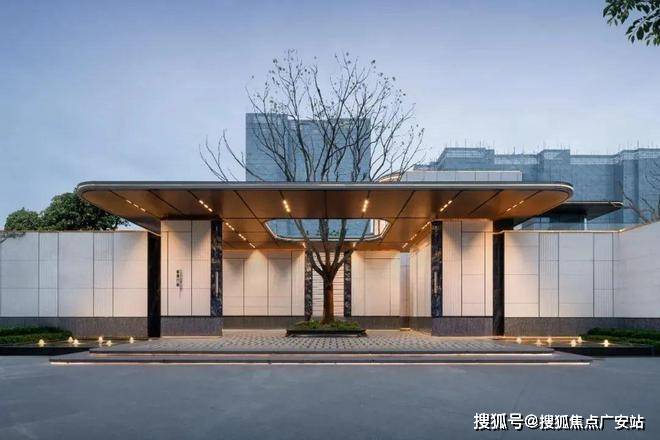 大幅通透玻璃建筑立面,辅以香槟色线条,演绎静奢主义的审美立意;