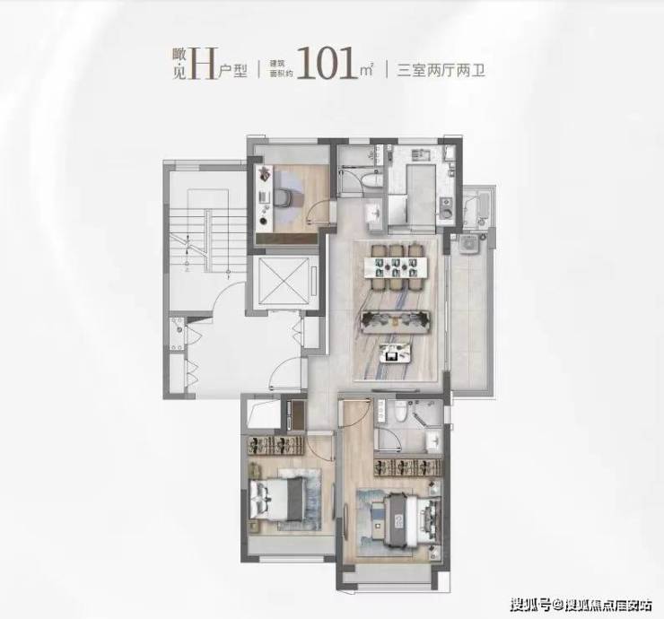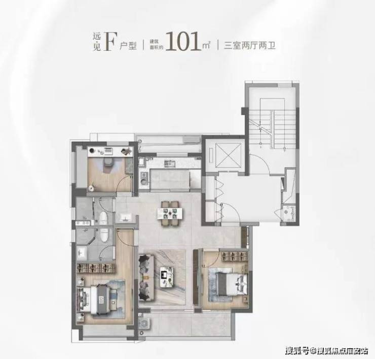 建面约101㎡的F和G户型都是市面上备受认可的飞机经典款户型。