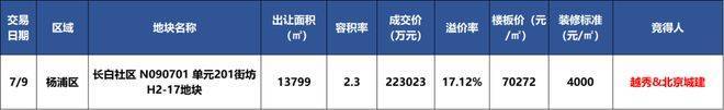 在上海的房地产市场上,又一颗璀璨的明星即将升起!7月9日的上海第三批次土拍中,北京城建与越秀地产组成的联合体以22.3 亿元的高价成功竞得杨浦区长白社区的H2-17地块,这一消息犹如一颗重磅炸弹,在地产界引起了巨大的轰动。