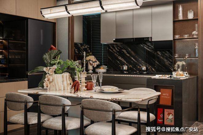 另外一方面,客卫的移位释放了大量的空间,放大了翎翠滨江餐厅、厨房,尺度感、通透性极强,并且做到了几乎0空间浪费。