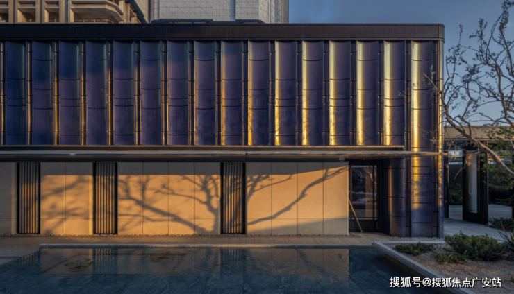 比如,选取珍珠蓝、香槟金、海派砖红等色彩,约270°圆弧建筑立面。