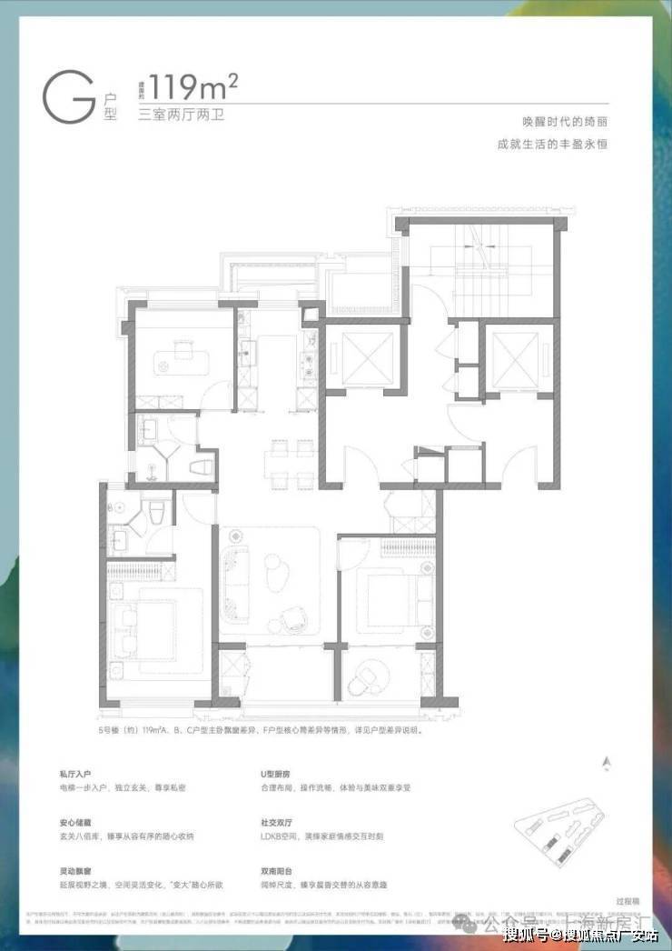 项目首推建面约117-139㎡3-4房,你想要的“类独立电梯厅”、“双阳台高实得率”、“大面宽”、“270°灵动飘窗”等应有尽有。