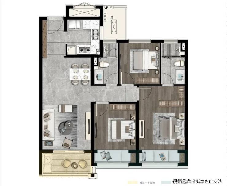 更值得一提的是,105平米的小三房房源,在整体小区的各个楼幢里,居然能占掉两栋楼的边户,这个设置在苏州基本绝迹,放在活力岛板块的核心,更是珍贵少有。