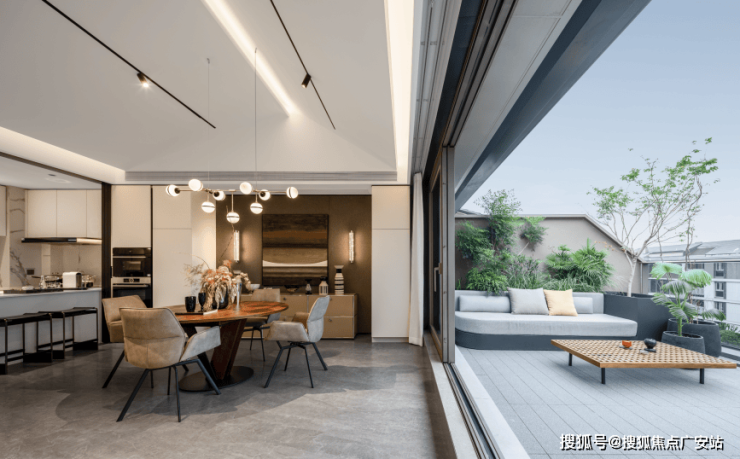 下叠“旗枪”户型,带来的则是另一番更有“墅感”的空间惊喜。月陇云岚的下叠户型,都带有两重院落。一重是地面归家入口,业主可以穿越一个草木葱郁的花园,带着美好而放松的心情,直接进入客厅。