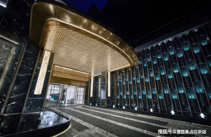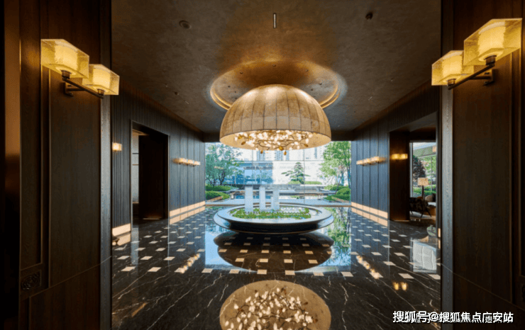 豪华酒店式门头,是整整用了一年时间才打磨出来的。香槟金吊顶,镌刻精致龙鳞祥云纹,细节处彰显高贵;通透质感的玻璃屏风与景观水系,两侧沿中轴展开,极致恢弘。