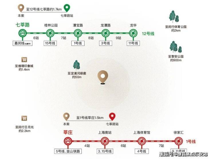 生态芯:淀浦河生态长廊、闵行文化公园、闵行体育公园、智联公园(规划)黎安公园、梅陇生态园、莘庄梅园、春申湖等优质森氧资源汇聚。