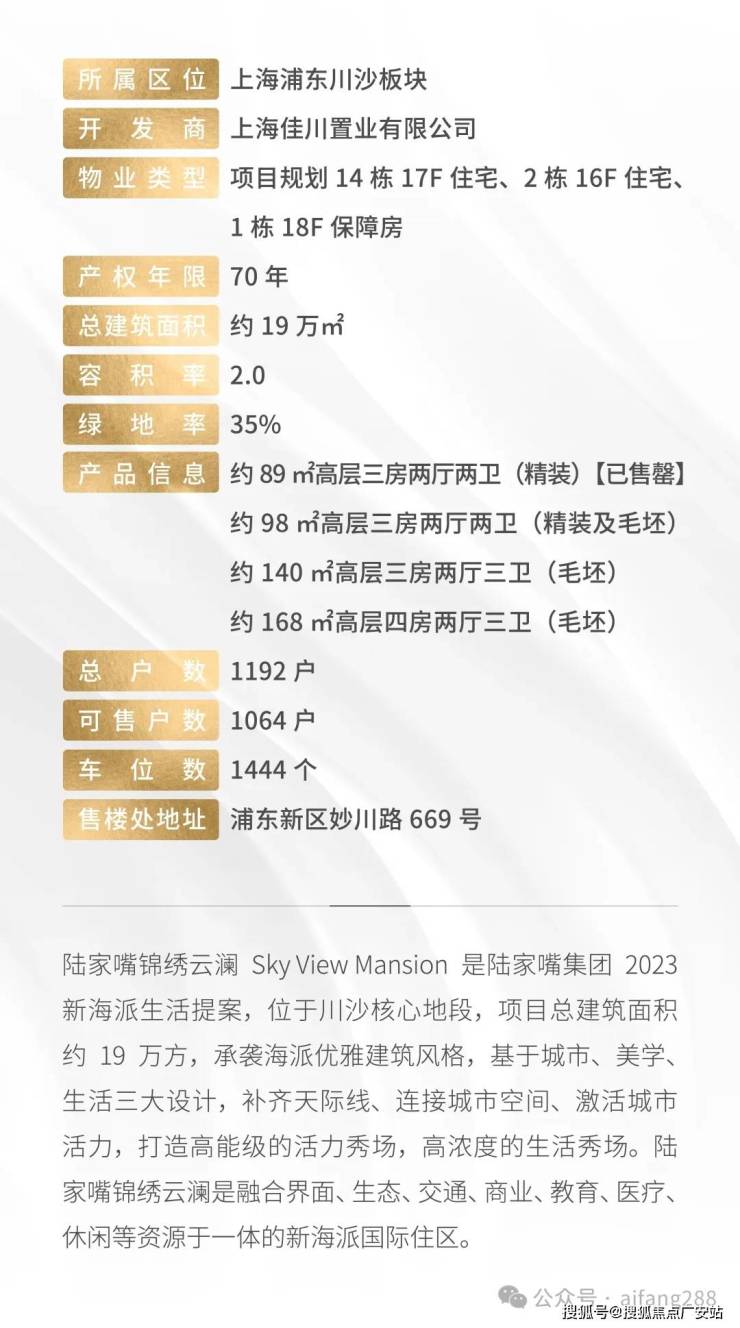 地铁2号线川沙站,浦东川沙【陆家嘴锦绣云澜】此次加推建面约98-168㎡3-4房,共计192套房源,均价65333元/㎡。已经开盘,可直接认购!