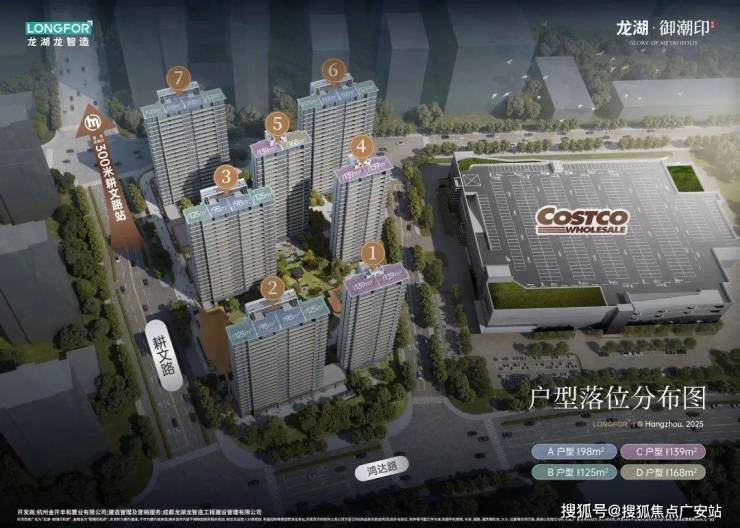龙湖御潮印占地约2.5万方,打造纯粹的7幢高层,错落排布出约494户住宅社区。