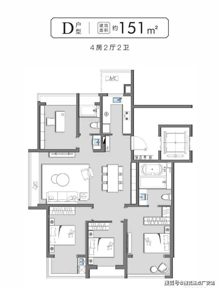151㎡四房三厅两卫:豪华户型,注重空间感和奢华感