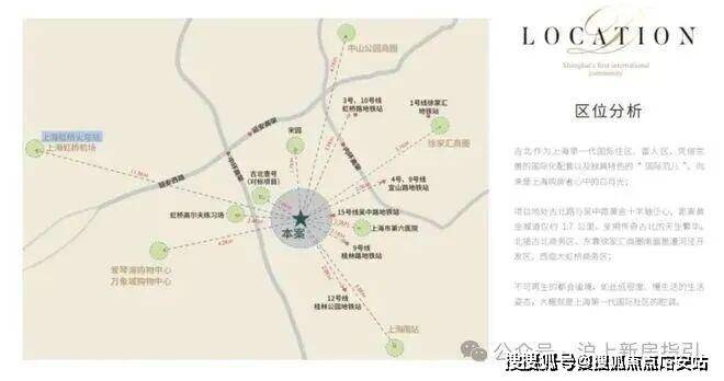 距离虹桥交通枢纽6.5公里左右,出差便利。产业、交通、配套齐聚,且周边就是古北壹号、古北臻园,圈层纯粹!