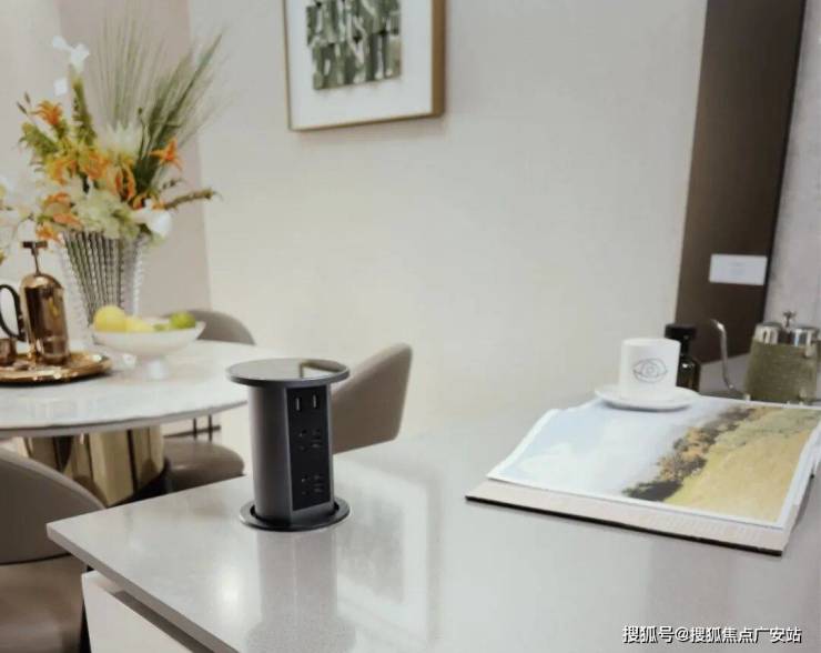 春晓园作为一个年轻的产品,深谙年轻人心理。在厨房配置的升降插座也非常实用,不仅安全不占用空间,而且还可以为手机无线充电。