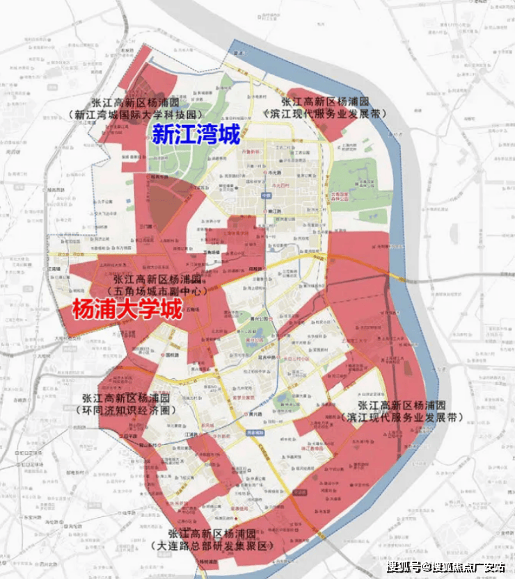 新江湾区域内有复旦、同济、财大等10多所著名高校,100多家科研院所,以及复旦附中、交大附中等重点高中。早在1996,该区域第一个高科技园区“五角场高新技术产业园”正式建立,从此杨浦开始走上产学研一体化道路,比如建设国家创新型试点城区,将杨浦园构建为张江示范区的重要组成部分等。杨浦还打出了一个大大的标语:至2030年,形成“大学的城市、城市的大学”。