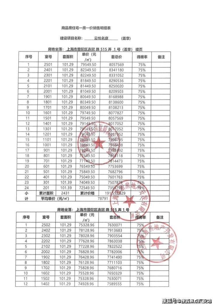 一房一价表