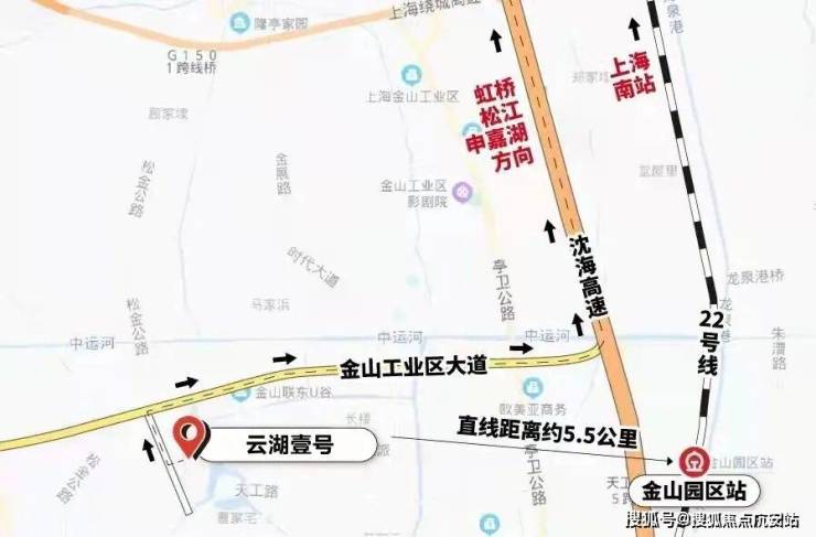 轨交方面,项目离轨交22号线金山园区站直线距离约5.5km,公交卡直接上车,可以去往上海南站,再坐三站地铁即到徐家汇。