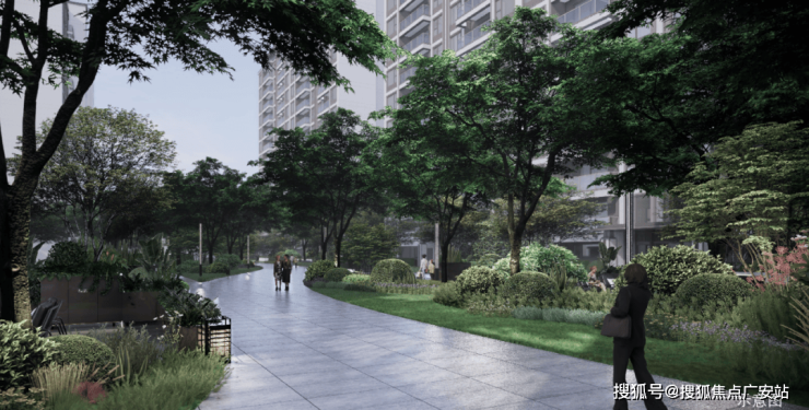 项目精心规划“一环一轴三园”,于建筑中另辟一方天地,以绿意包裹整个小区,打造绿氧环绕的公园住区。
