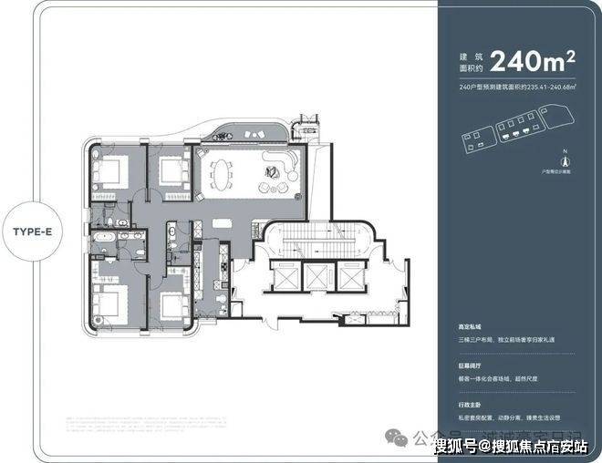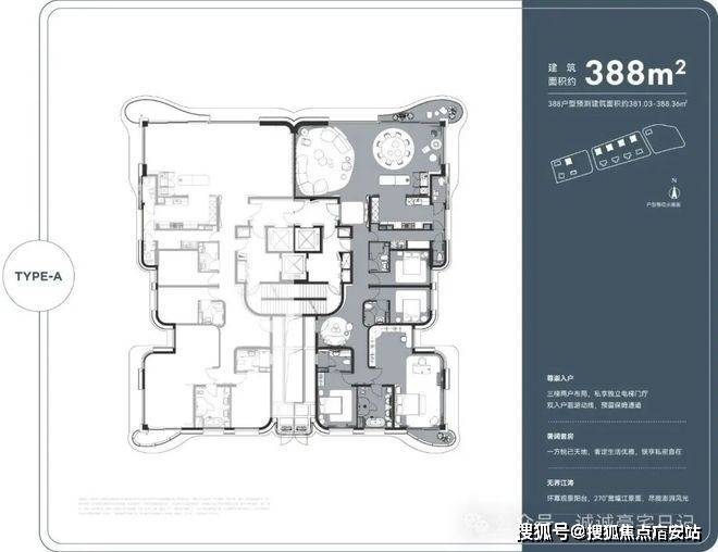 共有4种主力户型,包括建面约188-250-278-388㎡大平层。