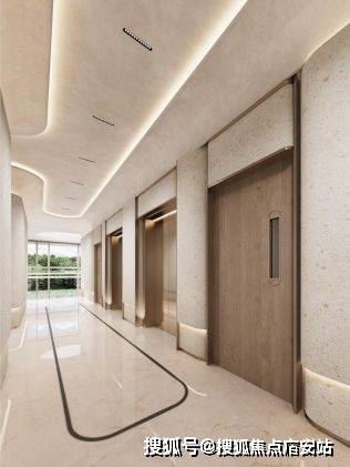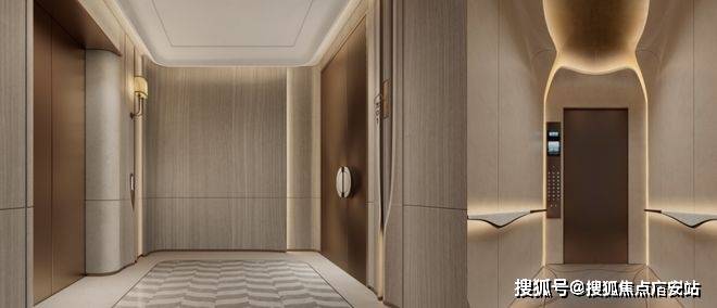 381户型公区电梯厅以独特的弧形墙设计引人注目,陆家嘴太古源·源邸售楼处电话:400-887-5663✔✔(售楼处最新电话)