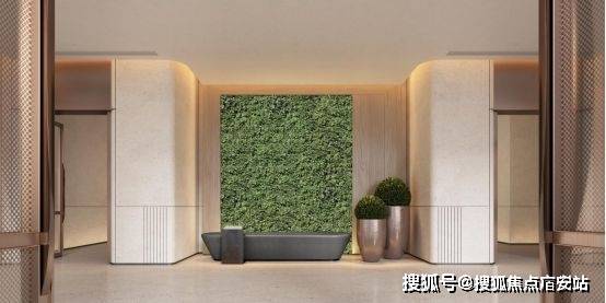 B2层单元大堂,绿植背景墙巧妙融入陆家嘴太古源·源邸售楼处电话:400-887-5663✔✔(售楼处最新电话)