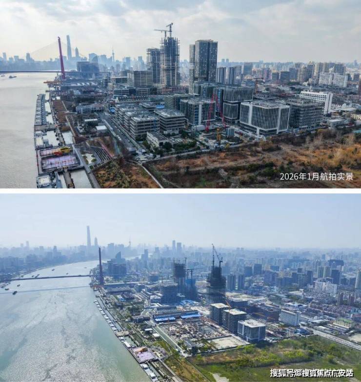 今年的杨浦滨江,恢弘钜制已然实景呈现:(上图是2026年1月的航拍实景,下图是2025年初的航拍实景,直观去对比,建设速度确实快,变化很大)