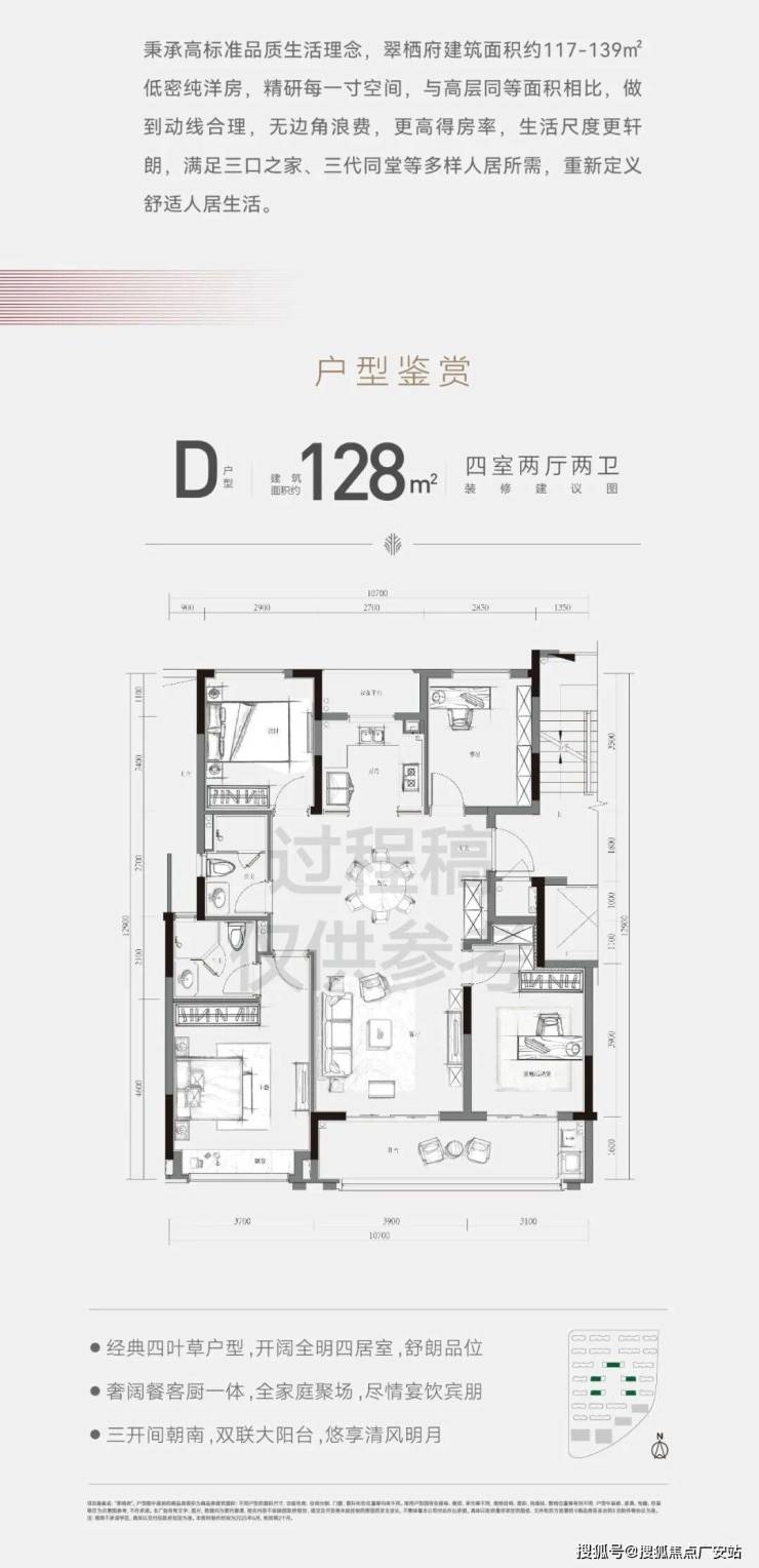 117㎡边套为四室两厅两卫,三开间朝南+南向双开间阳台。在洋房得房率的加持下,套内面积比肩高层建面约130㎡户型。滨江翠栖府售楼处电话:400-8657-114【预约看房热线】滨江翠栖府官方售楼处电话:4008657114【售楼处电话/地址】滨江翠栖府售楼处电话:400_8657_114【开发商认证】
