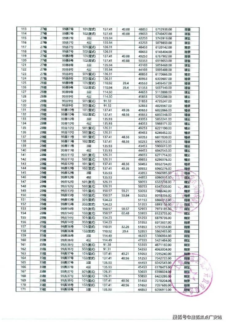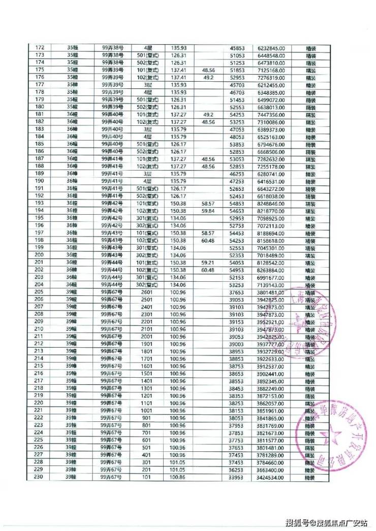 以下为项目最新一房一价表