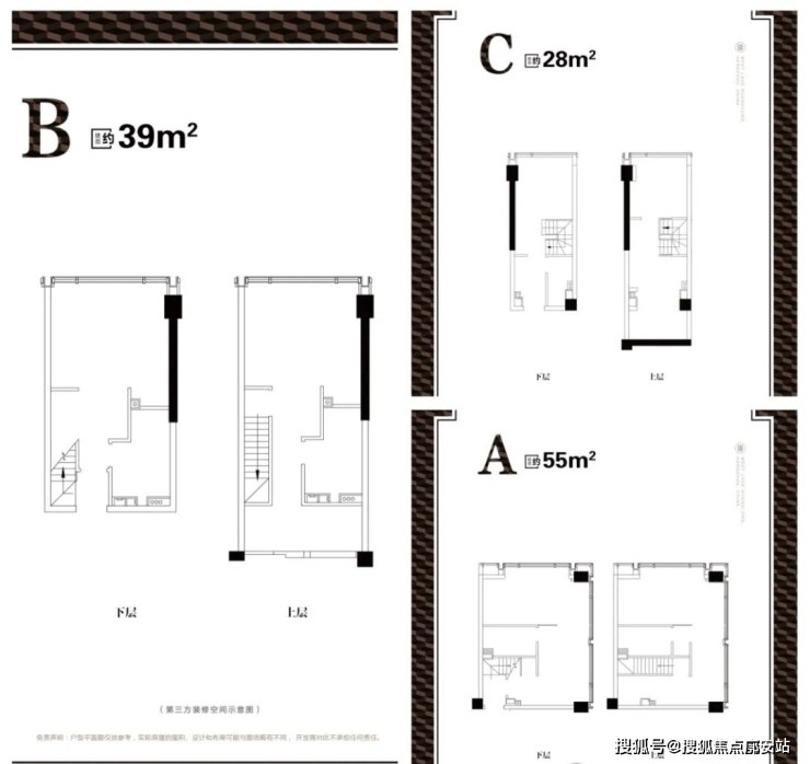 【户型】29-36㎡LOFT,39-45-55㎡双钥匙,主力户型39㎡