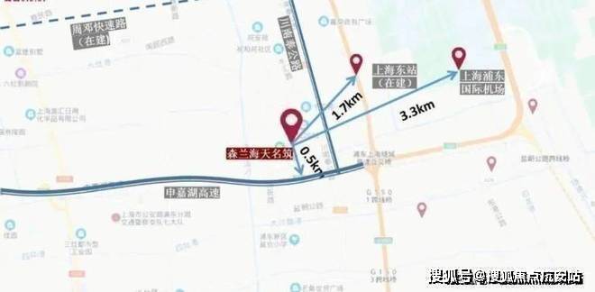 交通配套:该项目在整个祝桥板块的住宅项目中,交通优势明显,项目紧邻申嘉湖高速,高速出口距离该项目仅约0.5公里左右;直线距离上海东站(在建中)仅约1.7公里左右;直线距离上海浦东国际机场仅约3.3公里左右。