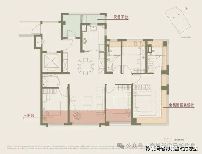 而该项目建面约144平户型,不仅配备三阳台、充足飘窗,更独有户内设备平台,多重赠送叠加后,总赠送面积达约22.5平,比常规户型多送近一半!