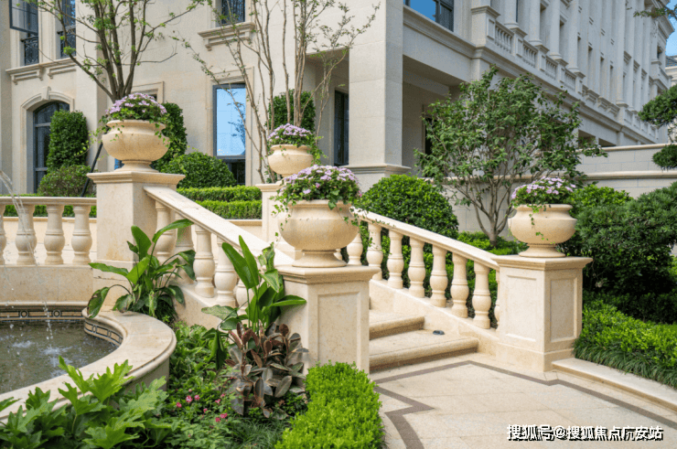 整个园区,以经典的绿城法式墅区景观大中轴贯穿细节部位使用