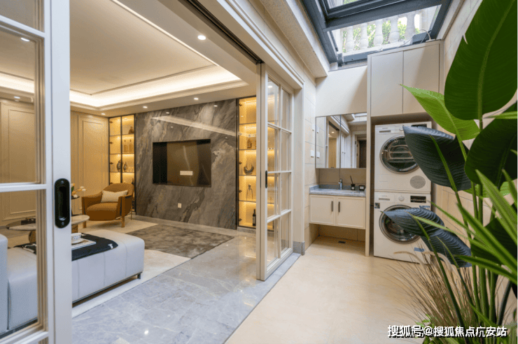 除了庭院,还有私享地下空间,大面的采光井带来明亮的视觉感受,可以在这里看个电影,或和朋友品茗畅谈。哪怕下雨,呆在这样的空间内也会感受到满满的安全感。
