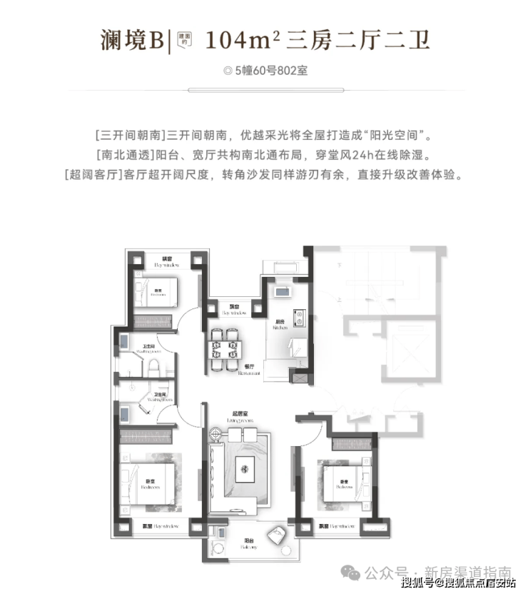 上叠:三层长辈房+奢阔一体化客餐厅,U型厨房空间;四层三房两卫布局,尊享主卧套房;北侧星空露台及顶层,美好生活自由定义。