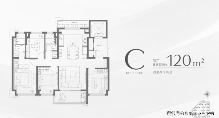 建面约120㎡4房2厅2卫▼