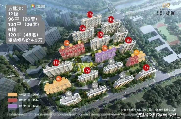 【招商中旅·揽阅】共计规划17栋12-14F小高层,首开楼栋位于整个项目的北侧,共3种户型,分别为建面约96㎡三房两卫、建面约104㎡三房两卫、建面约135㎡四房两卫。3种户型提供了全生命周期成长空间的方案。
