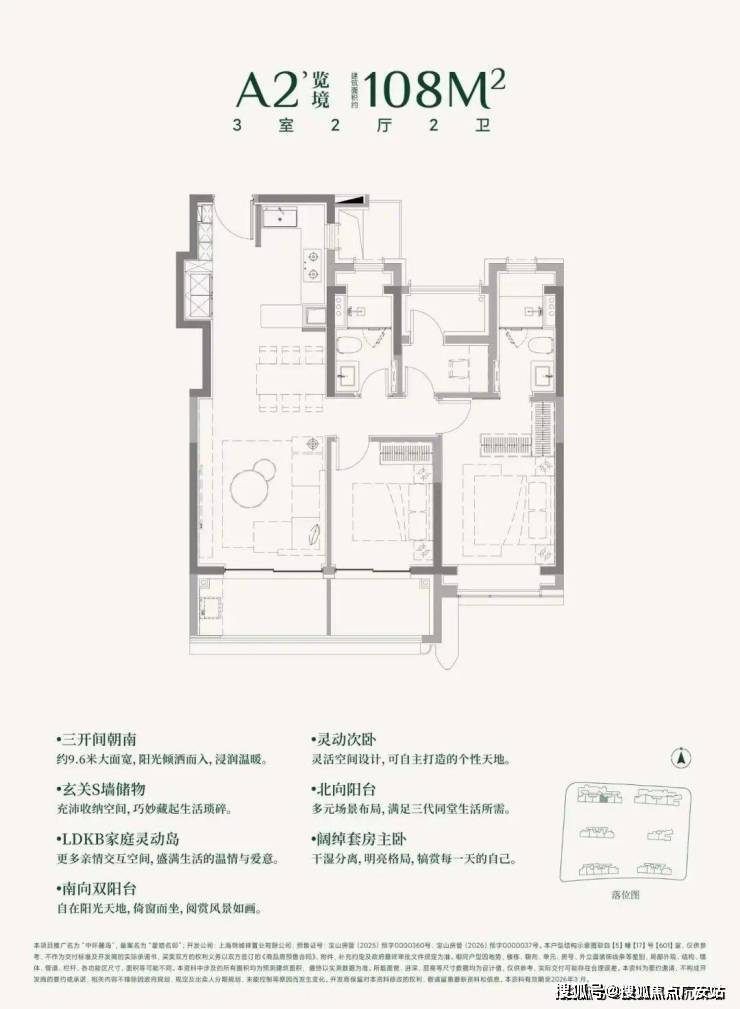 建面约108㎡3房的三阳台面积就高达约13㎡。(阳台仅附赠一半面积)