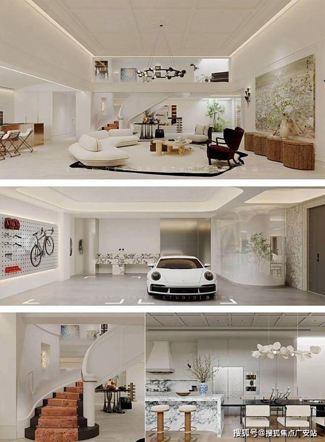 在产品设计上,天宸艺墅的合院别墅呈现出"中西合璧"的鲜明特色。建筑外立面采用石材、铝板与玻璃幕墙的组合,通过竖向线条和坡屋顶设计展现现代简约风格,而内部空间布局则借鉴了传统四合院的围合理念。主力户型为建筑面积约210-260平方米的叠拼合院,通过"前庭后院"的立体院落设计,实现了"空中庭院"的创新概念。以一套典型的边套户型为例,地上三层包含客厅、餐厨空间及三间卧室,地下层则规划为多功能娱乐区,通过约6米挑高的下沉式庭院解决采光难题。这种"地上居住+地下社交"的功能分区,精准契合了高端客群对私密性与社交性并存的需求。