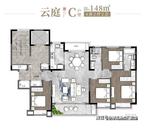 面积户型:约138㎡4房2厅2卫