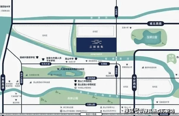 直线距离约1.3公里即是中环西线,无缝对接昆山各区域,萧林西路、城北西路、红杨路等,畅享多维交通路网。