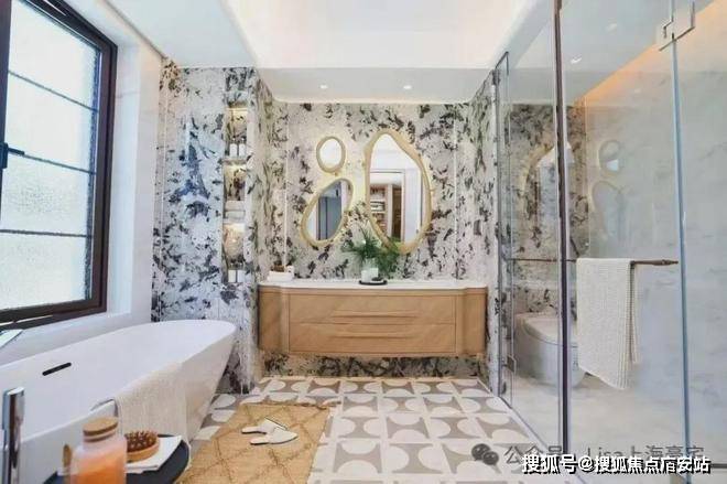 比如,半标无边界泳池以渐变马赛克墙面、水波纹感天花与透景玻璃幕墙,将下沉庭院景致融入其中,这处可游憩的水下艺境,就是一座美术馆级的美学场域。