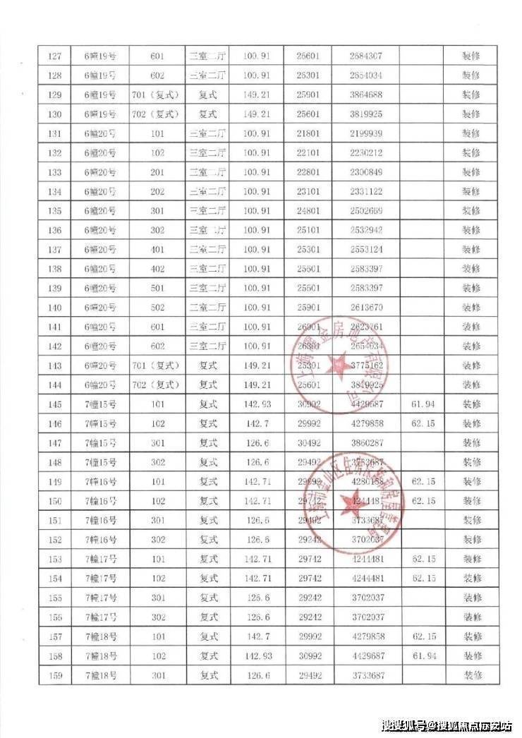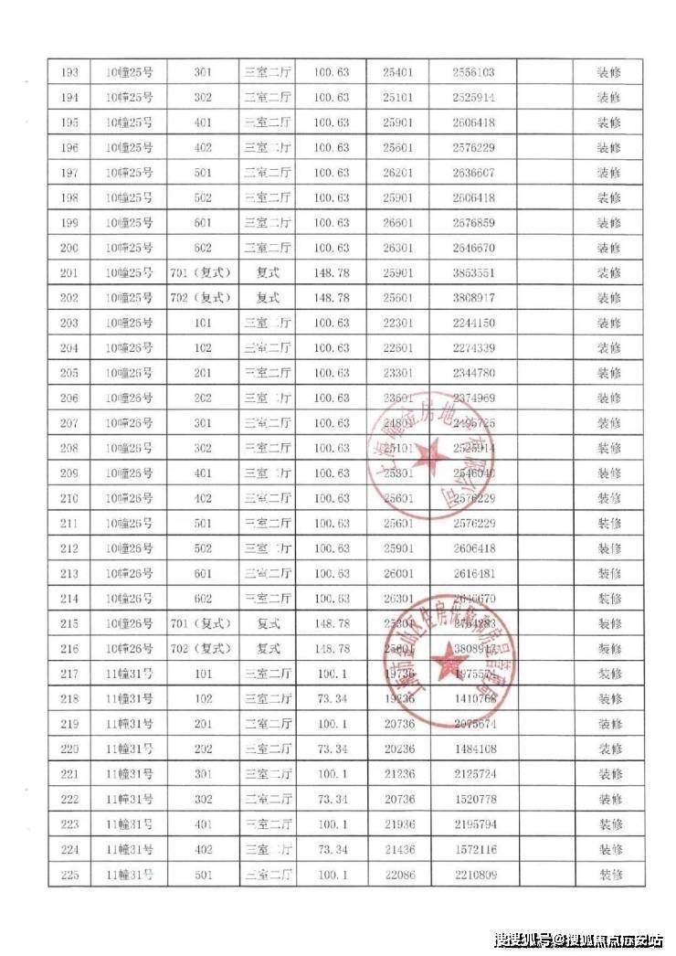 一房一价表如下: