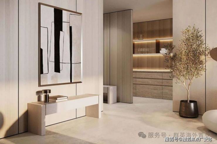 大厅,TRUSSARDI 风格设计,休息、办公区,无边水池、橄榄树,大厅高度 7 米。