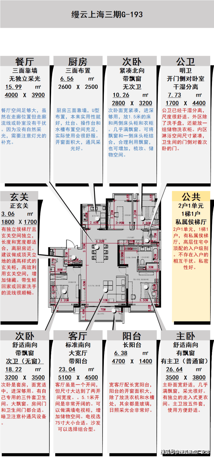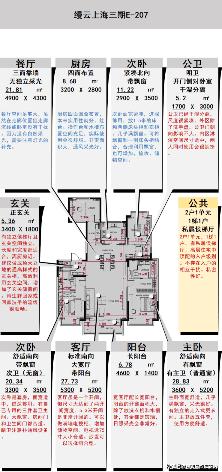 室内空间方面:项目打造私密纯粹的精装大平层、约3.3米层高(一期)、每户都有私享独立的电梯厅、270°观景会客厅(部分)!