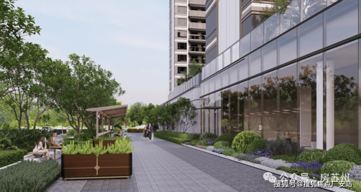 因为全人车分流,留给园林景观的空间也更多,打造约3600㎡立体景观体系。