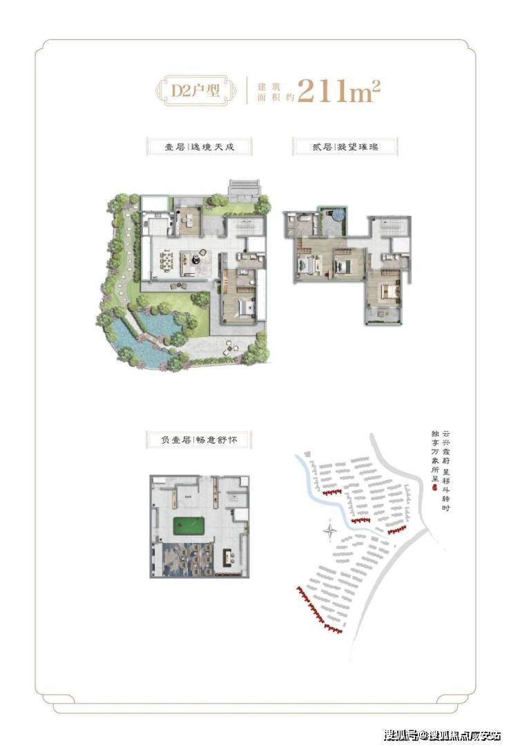 可参观实景园林与样板间,体验 “一河两湖” 生态与中式院墅生活。