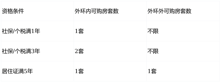 社保/个税满1年:外环内限购1套,外环外不限套数。