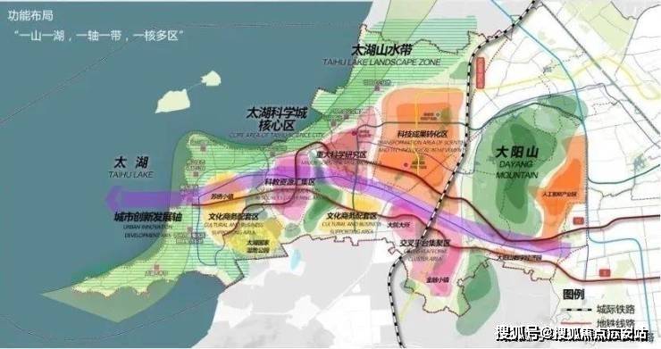 太湖科学城是落实长三角一体化国家战略,打造长三角国家创新中心,建设世界级生态湖区、创新湖区的重要载体,未来将建设5大功能板块,包括:重大科学研究区、科教资源汇集区、交叉平台集聚区、科技成果转化区、文化商务配套区。